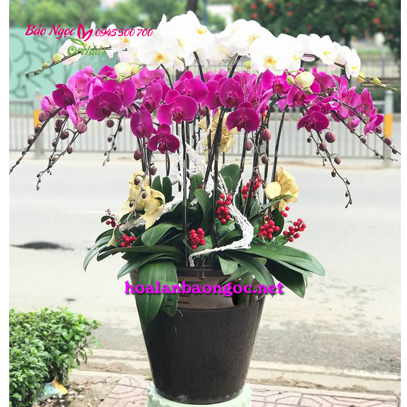 Lan hồ điệp trắng tím mừng khánh Thành HDS-2010 - Chậu hoa lan 20 cành ghép bởi 2 màu hoa lan: lan hồ điệp trắng , lan hồ điệp tím.